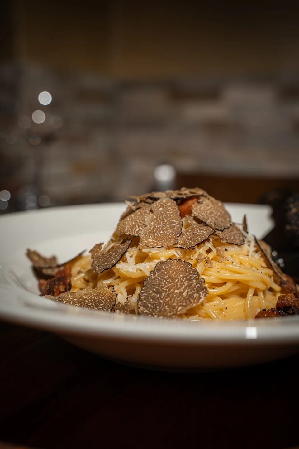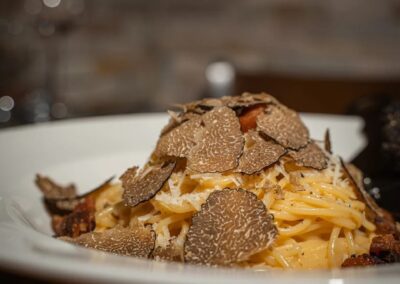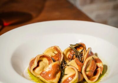Zu unseren Spezialitäten gehört die legendäre Walnusspasta, die Sie unbedingt probieren sollten. Sie wird mit unserer frischen Pasta und der Soße zubereitet, die unserer Trattoria ihren Namen gibt. Aber das ist noch nicht alles.